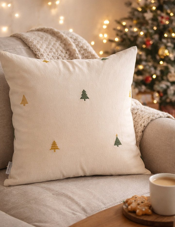 귀여운 트리 패턴으로 크리스마스 무드를 가득 채워주는 감성 쿠션 거실 소파, 침대, 아이방까지 포인트 데코