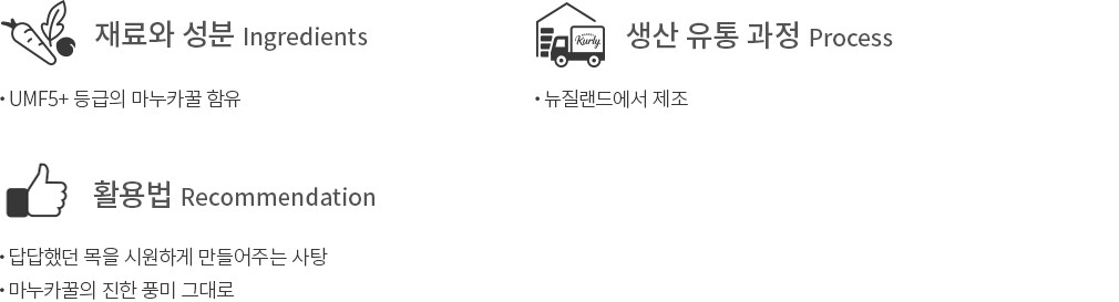 ・보관 시간이나 온도에 따라 꿀의 결정화가 생길 수 있으나, 제품의 품질과는 무관하오니 안심하고 드세요.
