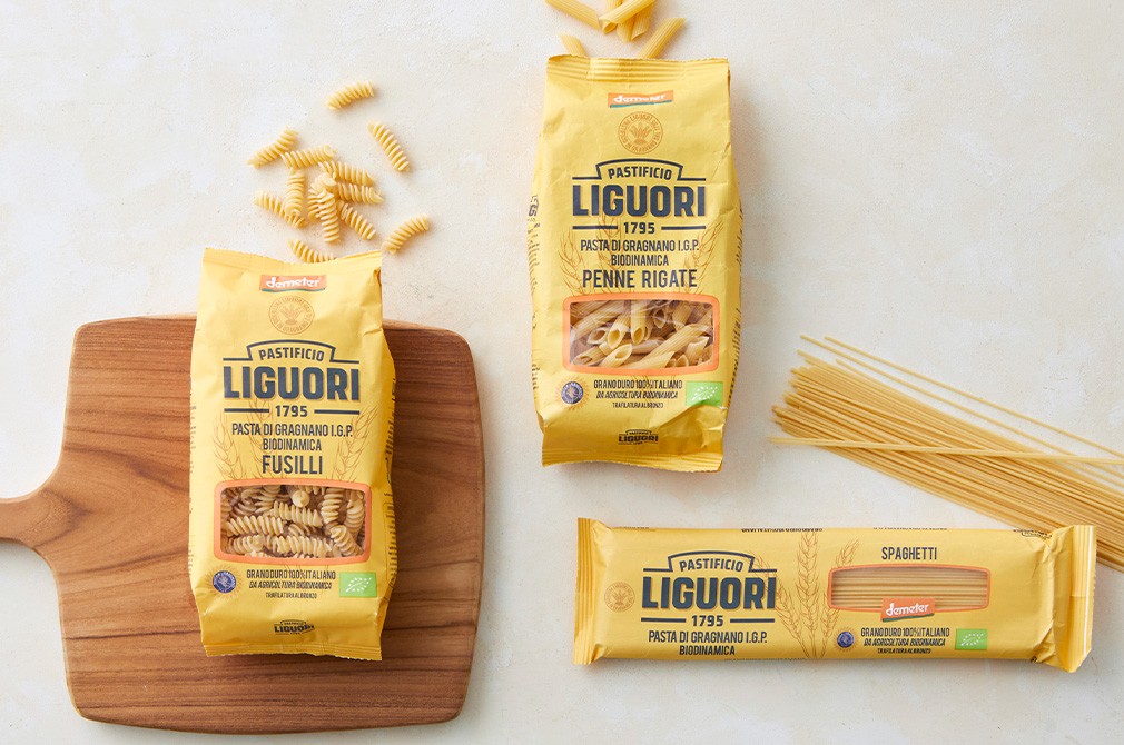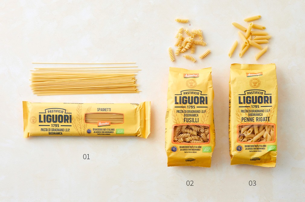 이탈리아 그라냐노시에서 시작되어 220년간 그 명성을 이어오고 있는 파스타 브랜드, 리구오리를 소개할게요. 지금 소개할 제품은 가장 엄격하고 까다로운 등급의 유기농 농업 인증인 ‘디메터 인증’을 받은 파스타입니다. 지리적 보호 표시 인증까지 획득해 더욱 안심하고 즐길 수 있죠. 100% 유기농 통밀만을 사용해 쫄깃하고 탄력있는 식감을 느낄 수 있어요. 다양한 소스와 잘 어울리는 스파게티부터, 푸실리, 펜네까지 3가지 종류를 준비했으니 취향에 따라 골라보세요.