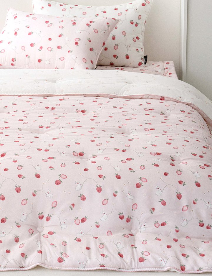 귀여운 토끼와 딸기 디자인으로 사랑스러운 양면이불