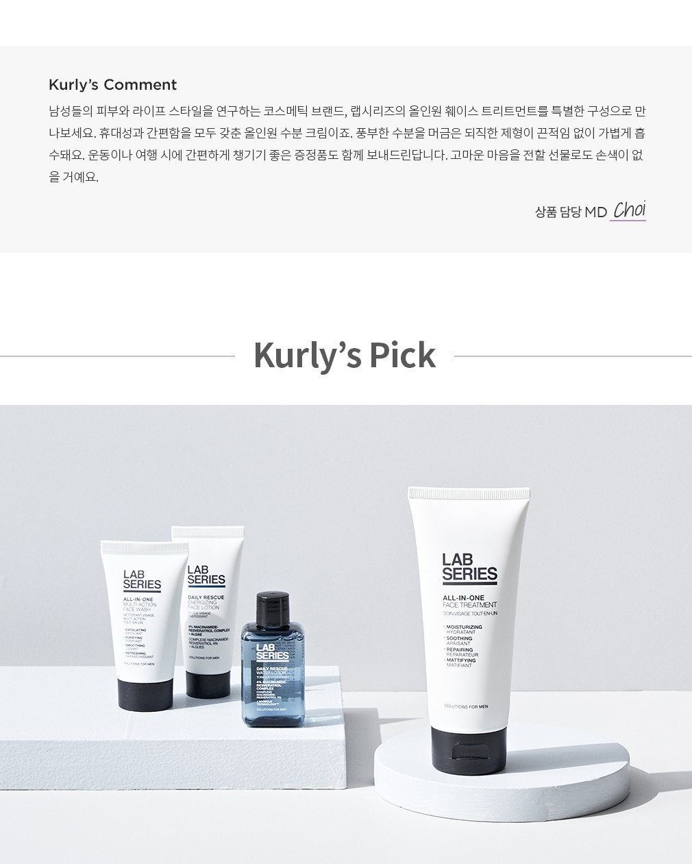 무릇 화장품이란 여성의 전유물로 여겨지던 시절, 남성의 피부를 들여다본 선구자가 있습니다. 글로벌 코스메틱 브랜드, 에스티로더의 창립자가 바로 그 주인공인데요. 사랑하는 남편과 아들에게 꼭 맞는 화장품을 고민하던 끝에, 남성 전문 스킨케어 브랜드 '랩시리즈'를 런칭하게 됩니다. '연구실(Laboratory)'이란 단어에서 따온 이름에 걸맞게 수많은 전문가들이 모여 오랜 시간 남성의 피부만을 연구했지요. 깊은 연구와 첨단 기술의 도입은 탄탄한 제품력과 독보적인 브랜드 정체성 확립을 가능케 했답니다. 지금도 랩시리즈는 전 세계 남성들의 니즈와 라이프스타일을 반영하며 진화하고 있어요.