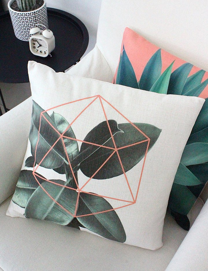 아이보리 계열의 바탕에 보태니컬 패턴이 감성을 돋우는 인테리어 쿠션