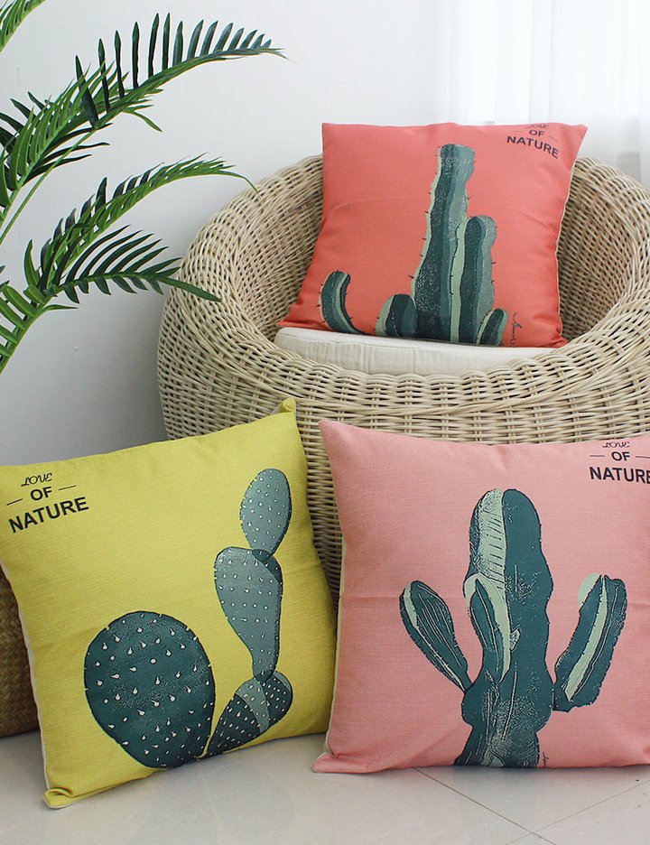 비비드한 선인장 패턴으로 공간에 생기를 더하는 45x45 소파 쿠션, 도톰한 쿠션솜 포함 구성으로 거실 침실 어디든 감각적인 포인트 인테리어를 완성합니다