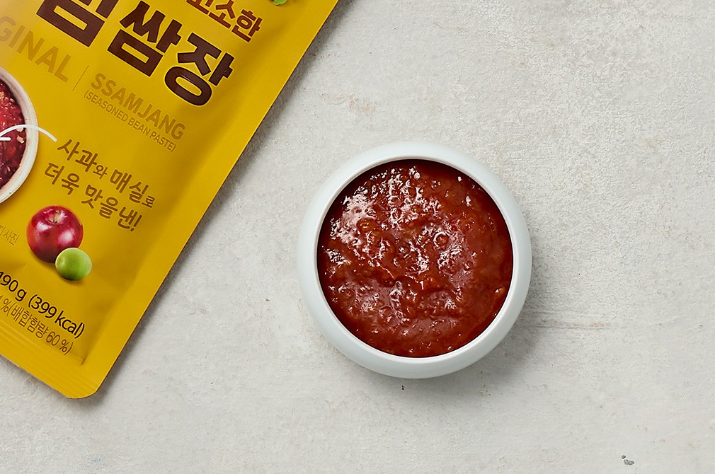 고소한 쌈장은 우리 식탁에 자주 쓰이는 식재료죠. 파우치에 간편하게 담아낸 청정원의 순창 양념쌈장을 소개할게요. 참깨, 마늘 등 갖은 양념에 사과와 매실로 달짝지근한 감칠맛을 더했어요. 고기 요리부터 쌈 채소까지 두루두루 잘 어울린답니다. 숟가락 없이 그릇에 바로 쭉 짜면 되니 깔끔하고 편리하죠. 캠핑이나 여행 시에 간편하게 챙겨가기도 좋을 거예요.