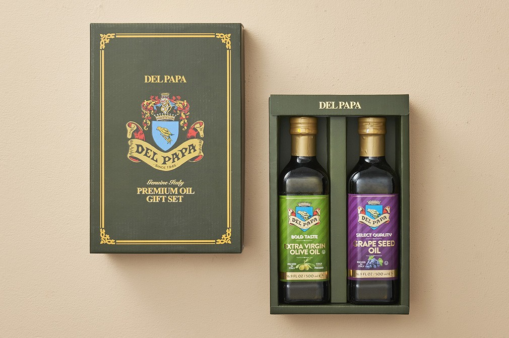 1945년부터 70년 이상 올리브유에 집중해온 브랜드, 델파파의 선물세트를 소개할게요. 올리브를 냉압착해 본연의 풋풋한 과일 향이 돋보이는 엑스트라 버진 오일과, 발연점이 높아 두루두루 활용하기 좋은 포도씨유를 한 병씩 담았답니다. 샐러드 드레싱부터 가열 요리까지 두루두루 활용해 보세요. 박스에 담아 보내드리니 마음을 전하는 선물로도 추천해 드릴게요.