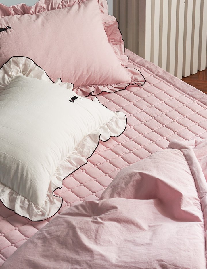 바이오워싱 가공한 하이엔드 고밀도 원단으로 부드러운 터치감과 자연스러운 구김이 있는 프릴 침구