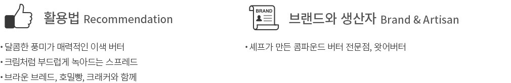 똑똑 잘라 사용하는 버터가 익숙하신 분들께 새로운 버터의 세계를 소개할게요. 다채로운 맛과 풍미를 지닌 버터를 선보이는 곳, 왓어버터랍니다. 지금 소개하는 망고 버터 스프레드는 뉴질랜드 버터에 망고퓨레, 꿀 등을 넣고 완성한 제품인데요. 부드러운 질감 덕에 빵에 사르르 크리미하게 녹아들고요. 망고의 산뜻한 달콤함이 진하게 느껴져요. 폭신한 브라운 브레드에 곁들이면 레스토랑에서 만났던 정겨운 맛 그대로 즐길 수 있답니다.