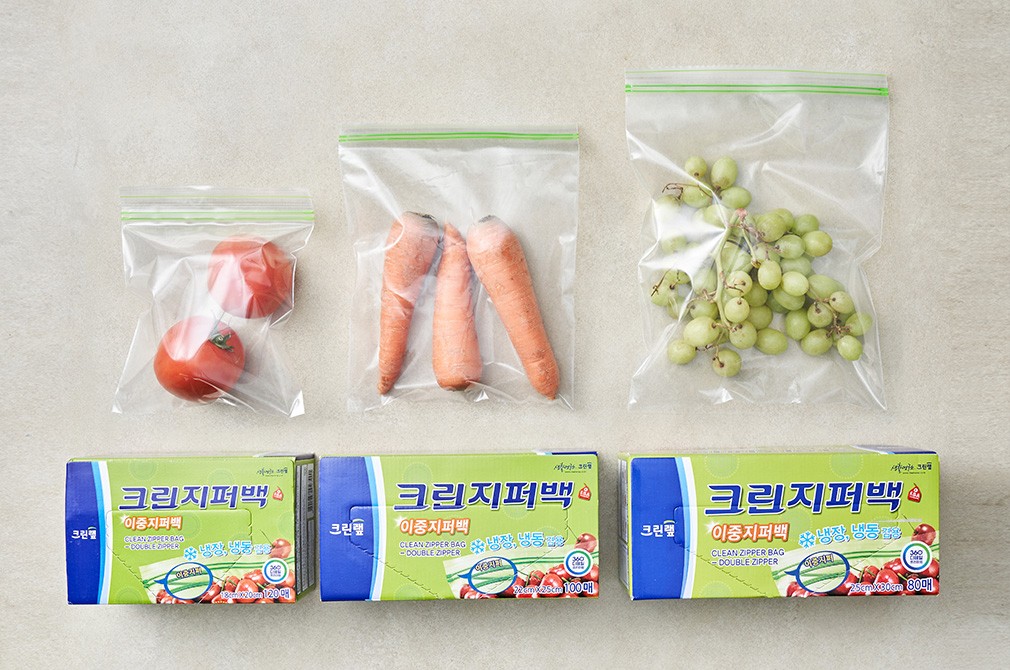 ・특징 : 중형 지퍼백은 당근이나 손질한 대파, 굴비 등의 식품을 담기 좋은 크기에요.