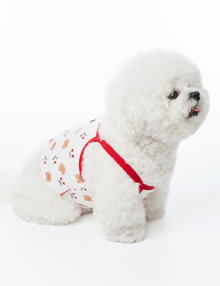 [키니키니X어프어프]DOT CHERRY BEAR CROP TOP-IVORY(크롭탑)