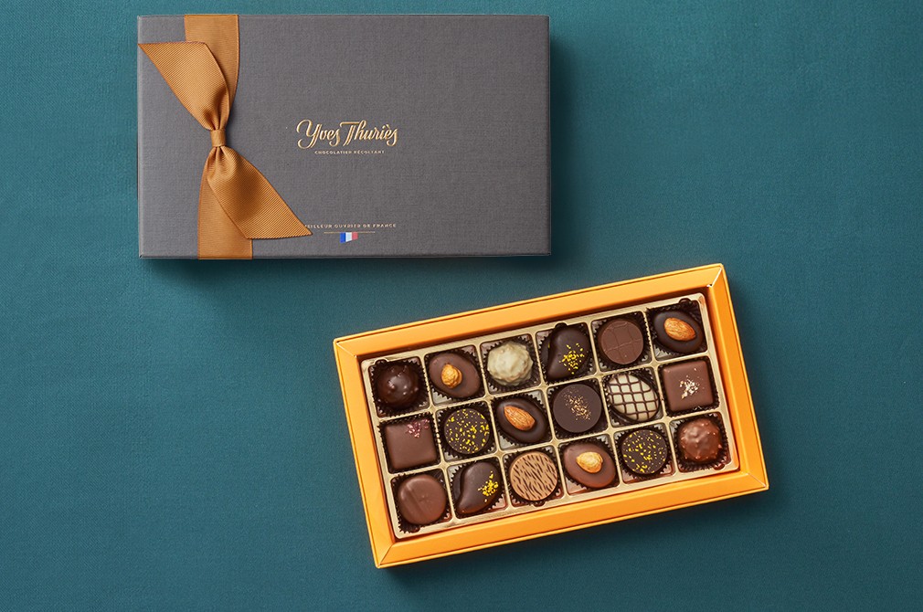 명장의 초콜릿, 이브뚜리에의 명성을 경험할 수 있는 봉봉 초콜릿을 소개합니다. 이브뚜리에는 프랑스 최고의 명장을 심사하는 MOF에서 2관왕을 거머쥔 셰프인데요. 자신의 노하우와 기술을 바탕으로 1991년에 초콜릿 브랜드 '이브뚜리에'를 설립했답니다. 이브뚜리에의 여러 가지 초콜렛을 다채롭게 맛볼 수 있도록 초콜릿 18개를 고급스러운 상자에 담아 준비했어요. 하나씩 골라 깊은 풍미를 음미해 보세요. 달콤하게 마음을 전하는 선물로도 꼭 알맞을 거예요.