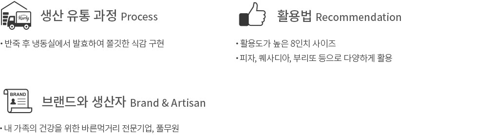 풀무원 순두부와 국내산 콩가루를 넣어 한층 더 고소하게 완성한 순두부 또띠아를 만나 보세요. 반죽 후 냉동실에서 발효하여 또띠아 본연의 쫄깃한 식감을 제대로 살려냈답니다. 그 덕에 또띠아를 돌돌 말 때도 쉽게 뜯어지지 않아 요리하기 참 편해요. 한 봉에 또띠아 5장을 담아 보내드리니 타코나 퀘사디아, 샌드위치 랩 등으로 다양하게 활용해 보세요. 좋아하는 소스와 토핑을 얹어 피자로 요리해도 좋을 거예요.