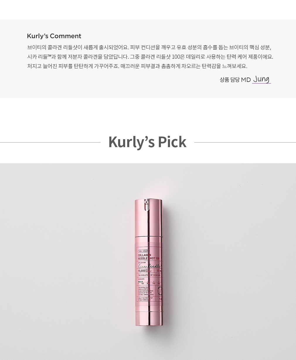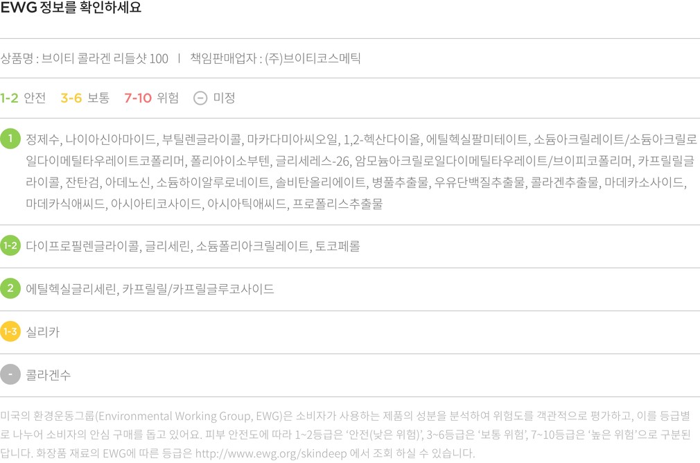 ・ 특징 : 유효 성분의 흡수를 돕고 피부를 매끄럽게 케어하는 시카 리들™과 함께 저분자 콜라겐을 담아 피부 탄력을 집중 케어해줍니다.
