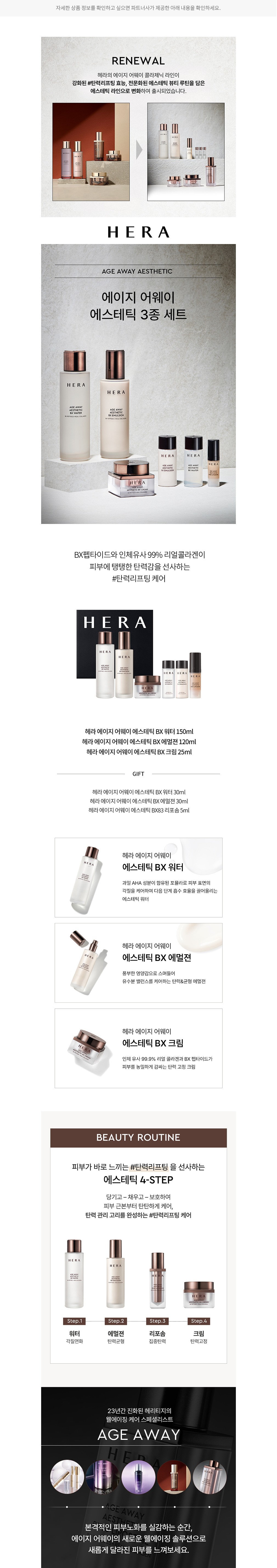에이지 어웨이 에스테틱 3종 세트 ・ 구성 : ①에이지 어웨이 에스테틱 BX 워터, ②에이지 어웨이 에스테틱 BX 에멀젼, ③에이지 어웨이 에스테틱 BX 크림, ④증정품