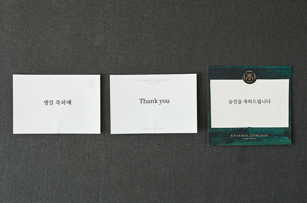 메시지 카드 안내 ・ 원하는 문구를 담은 메시지 카드를 함께 보낼 수 있어요. 메시지 문구는 조선호텔 격물공부에 요청해주세요.