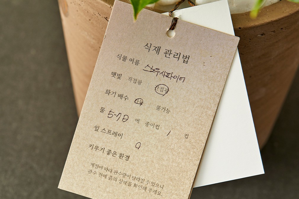 구입 전 참고사항 ・ 맞춤 관리법을 함께 보내 드립니다. 식물 이름과 햇빛, 물주기 등 식물에 대한 정보를 확인할 수 있어요.