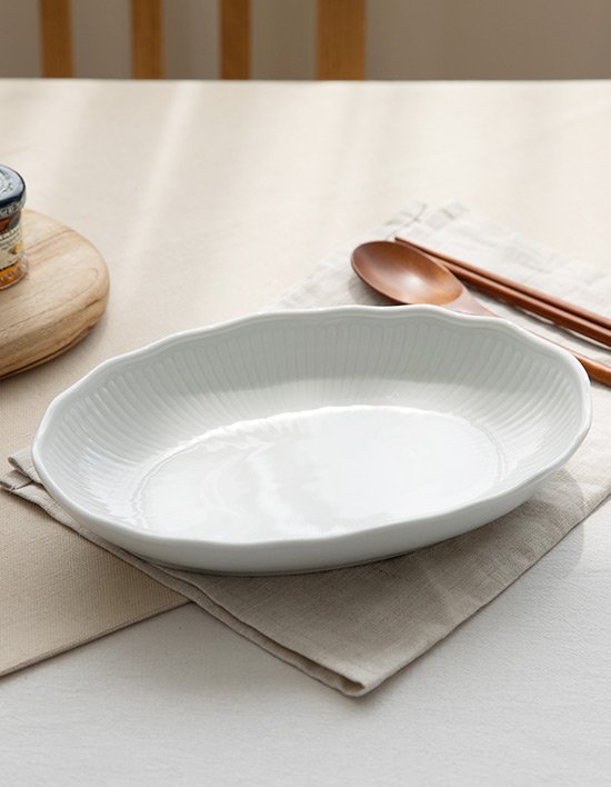 [체스키포슬란] 프라하화이트 타원형 샐러드접시 23cm (단품)