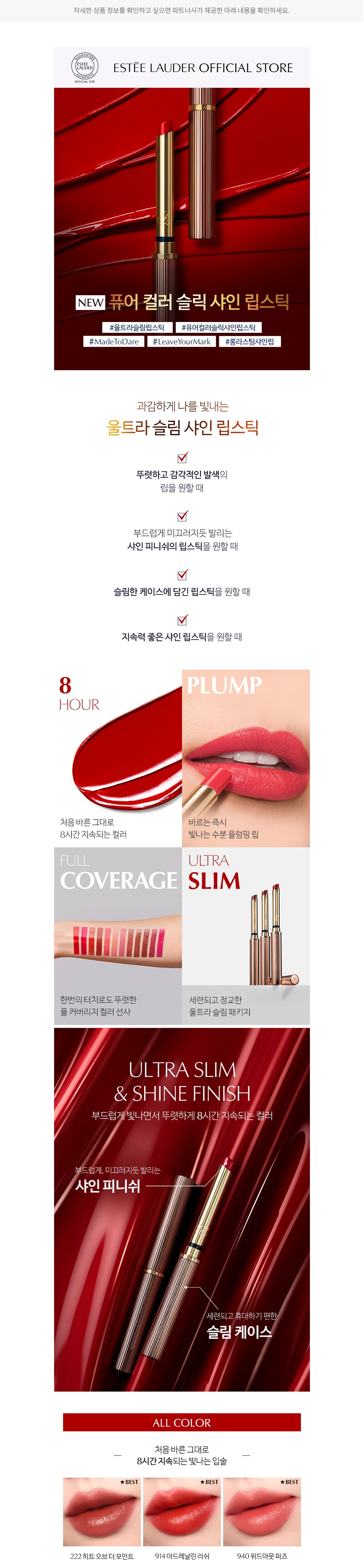 [에스티 로더] 퓨어 컬러 익스플리시트 슬릭 샤인 립스틱 0.7G 3종(택1)