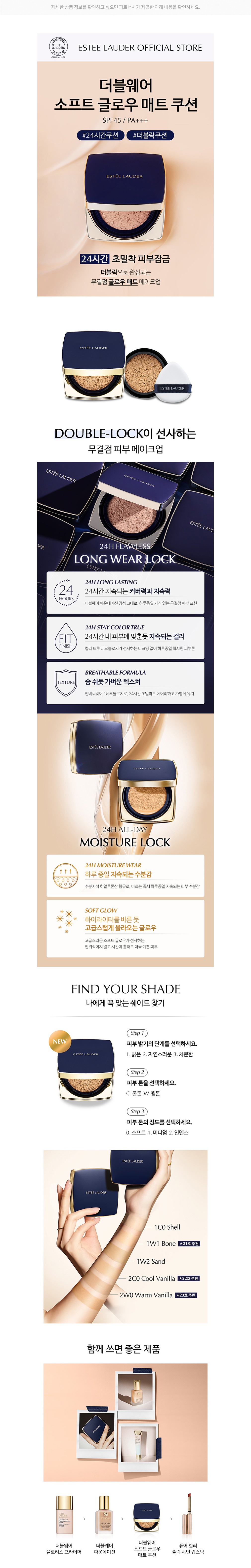 01. 더블웨어 소프트 글로우 매트 쿠션 SPF45 / PA+++ 1C0 쉘 ・ 구성 : ①본품 1개(12g), ②리필 1개(12g)