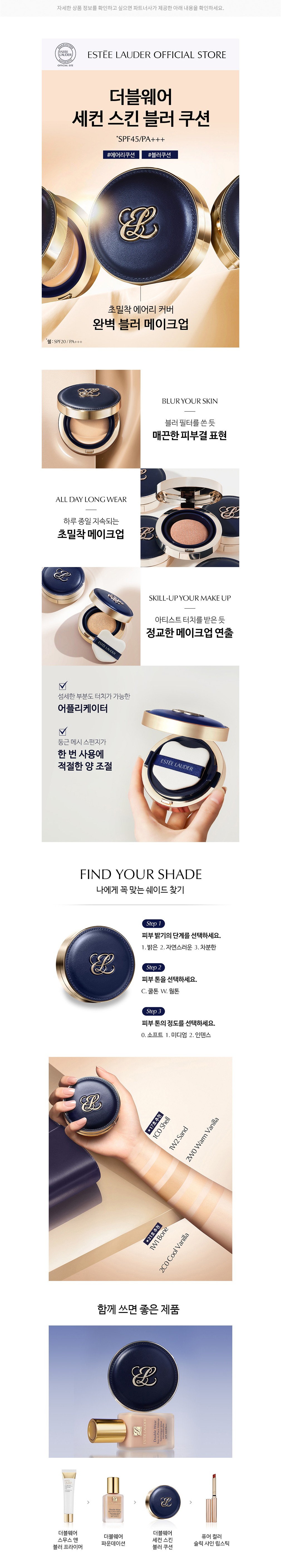 [에스티 로더] 더블웨어 세컨 스킨 블러 쿠션 (리필 포함) SPF25 / PA+++5종(택1, NEW 컬러 추가)