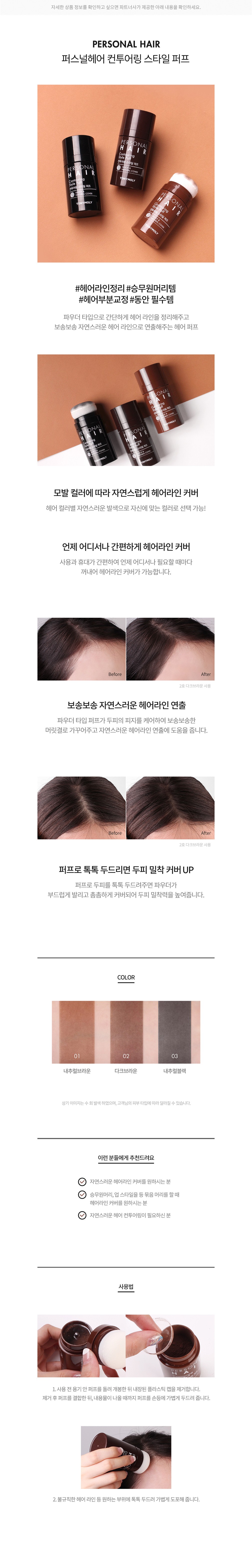사용법 ・내장된 퍼프로 헤어 라인 커버를 원하는 곳에 톡톡 두드려주세요.
