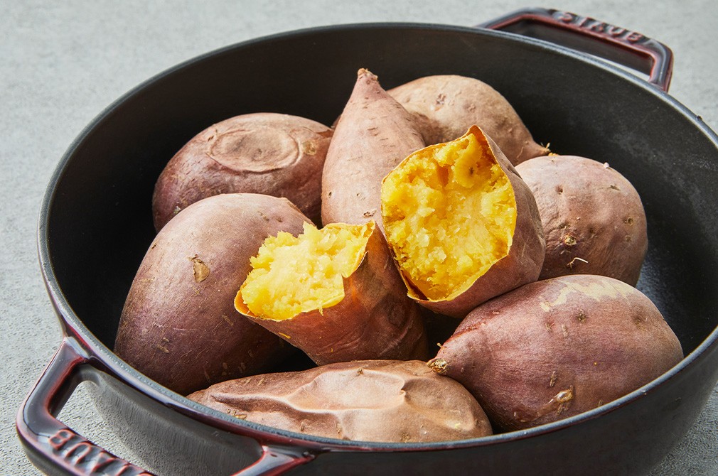 ・찐고구마 : 세척한 고구마를 냄비에 넣고 물을 자작하게 부어주세요. 물이 끓기 시작하면 중불로 줄여 속까지 고루 익혀주세요.
