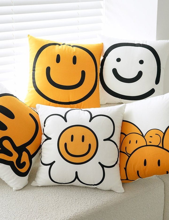 통통튀는 해피스마일 캐릭터 디자인으로 소파와 침대에 포인트를 더해주는 폭신한 인테리어 쿠션