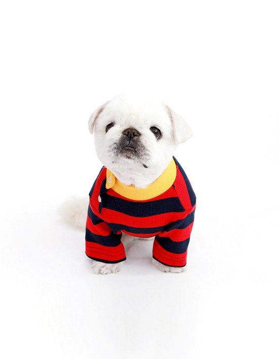 [키니키니] STRIPE NECK BUTTON TSHIRT-RED(반팔티)