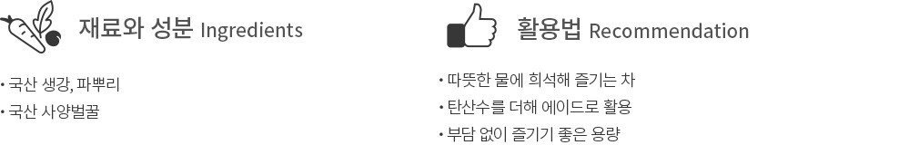 드시는 법 ・ 컵에 청을 담고 물이나 탄산수에 3~5배 정도 희석해 드세요.