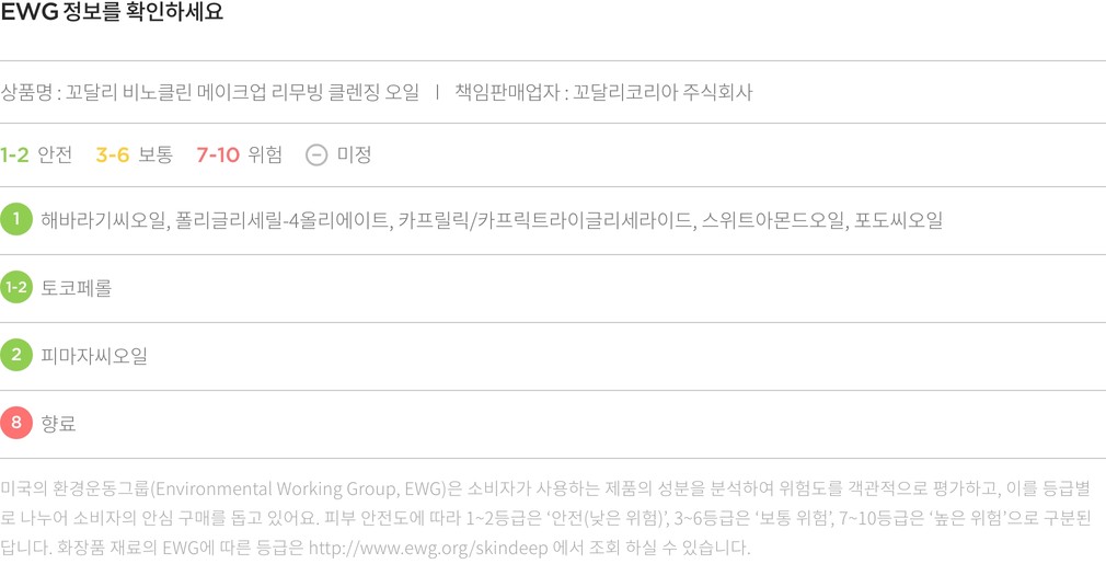 제형 자세히 보기 ・ 제형 : 적당한 점성이 있는 오일 타입이에요.