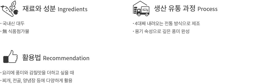 80년 이상의 전통을 자랑하는 두부 명가, 김구원선생의 장단콩으로 만든 전통된장을 만나 보세요. ‘장단콩’은 ‘파주시 장단면에서 재배한 콩’을 뜻하는데요. 사람의 왕래가 적고 깨끗한 자연환경을 지닌 곳에서 재배되어 신선하고 훌륭한 품질을 자랑해요. 지금 소개하는 된장 역시 어떠한 첨가물도 넣지 않고 장단콩과 소금, 물로만 깔끔하게 만들었답니다. 전통 방식 그대로 만든 것은 물론, 옹기로 숙성하여 깊은 풍미를 완성했어요. 깊고 진한 맛을 지닌 된장을 찾으신다면 망설임 없이 선택해 보세요.