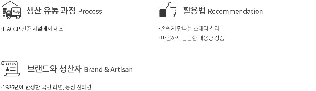 오랜 시간 꾸준히 사랑 받아온 라면을 컬리에서 간편하게 만나보세요. 얼큰한 라면의 대명사, 신라면을 준비했는데요. 농심만의 노하우로 진공 농축 시킨 소고기맛 베이스가 들어가 감칠맛 가득한 국물을 완성했지요. 특별 배합한 밀가루로 만든 쫄깃한 면은 국물과 잘 어우러져 깔끔하게 마무리된답니다. 넉넉한 20개입 대용량 상품으로 보여드릴게요. 라면은 꼭 신라면만 고집하는 마니아라면 서둘러 장바구니에 담아보세요.