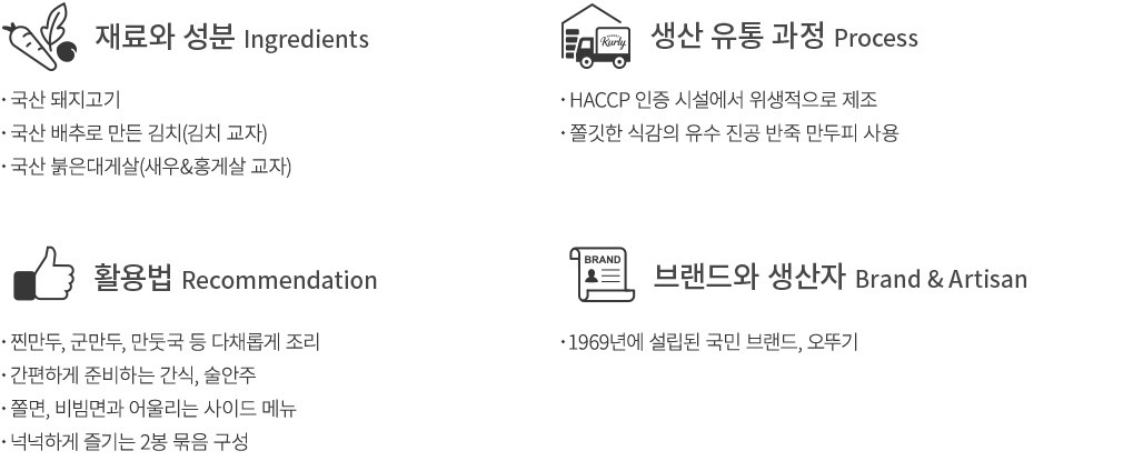 X.O.교자 고기: 우유,대두,밀,새우,돼지고기,닭고기,쇠고기,조개류(굴,가리비)함유. 계란,메밀,게,땅콩,고등어,복숭아,토마토,아황산류,호두,오징어,조개류(전복,홍합 포함)혼입가능 X.O. 교자 김치: 우유,대두,밀,새우,돼지고기,오징어,조개류(홍합)함유. 계란,메밀,게,토마토,아황산류,호두,닭고기,쇠고기,조개류(굴,전복포함) 혼입가능 X.O 새우&홍게살: 우유,대두,밀,게,새우,돼지고기,쇠고기,조개류(굴,가리비) 함유. 계란,메밀,토마토,아황산류,호두,닭고기,오징어,조개류(전복,홍합 포함) 혼입가능
