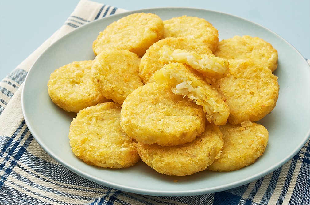 ・특징 : 해바라기씨유에 깨끗하게 튀겨낸 감자 팬케이크입니다. 미니 사이즈의 감자 팬케이크가 여러 개 들어있어 조금씩 꺼내 먹기 좋아요.