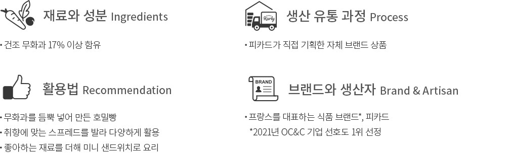 피카드와 함께면 완성되는 미식 코스 1973년 시작된 피카드는 프랑스 내 *기업 선호도 1위에 선정될 만큼 국민적으로 큰 사랑을 받는 프랑스 대표 식품 브랜드입니다. 건강하고 좋은 음식에 대한 사랑을 지속적으로 추구해 온 프랑스의 역사적인 기업이랍니다. 미식의 나라답게 정찬부터 다양한 냉동 채소와 과일, 애피타이저, 디저트까지 다양한 종류의 고품질 냉동식품을 만들고 유통합니다. 현재 프랑스에만 1050개가 넘는 매장을 보유하고 있으며 유럽, 중동, 일본 등 18개국에 진출했어요.