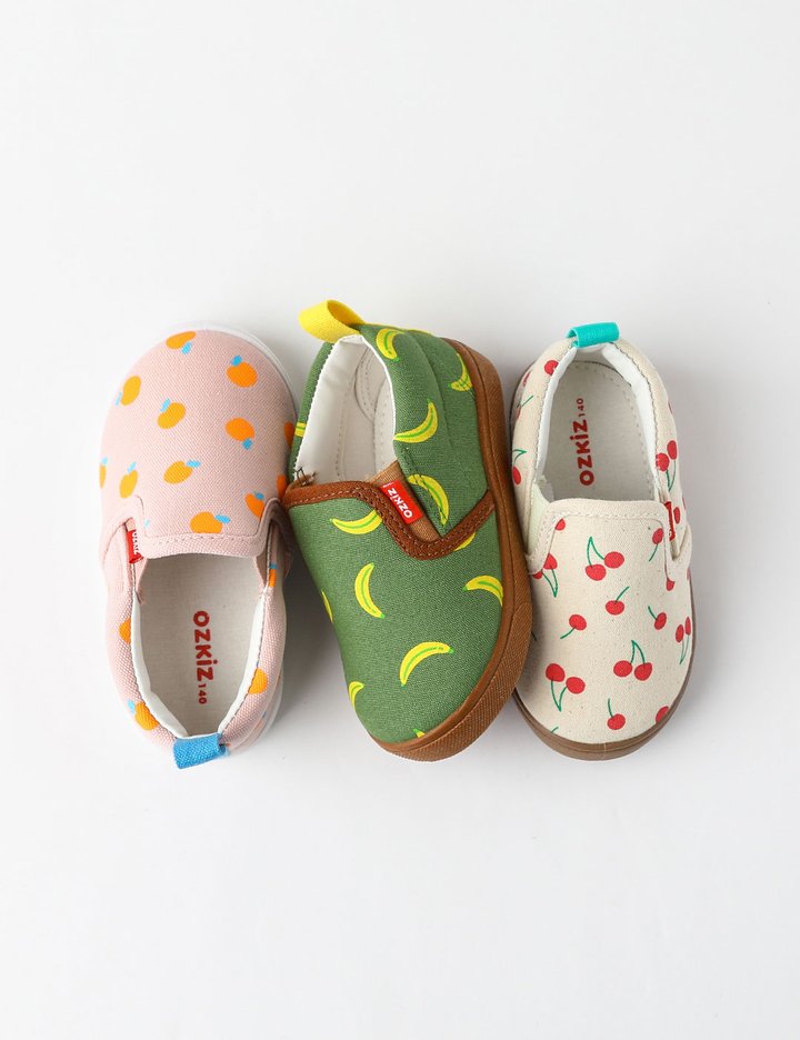 동글동글, 귀여운 실루엣 깜찍한 과일 패턴 슬립온