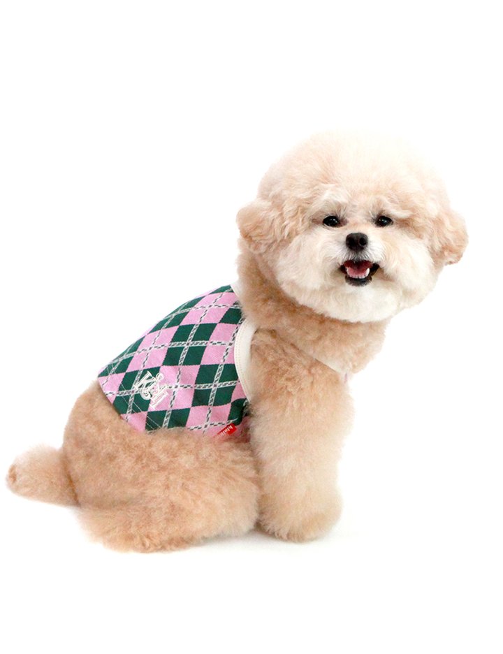 [키니키니] KINI ARGYLE PATTERN CROP TOP-PINK(크롭탑)