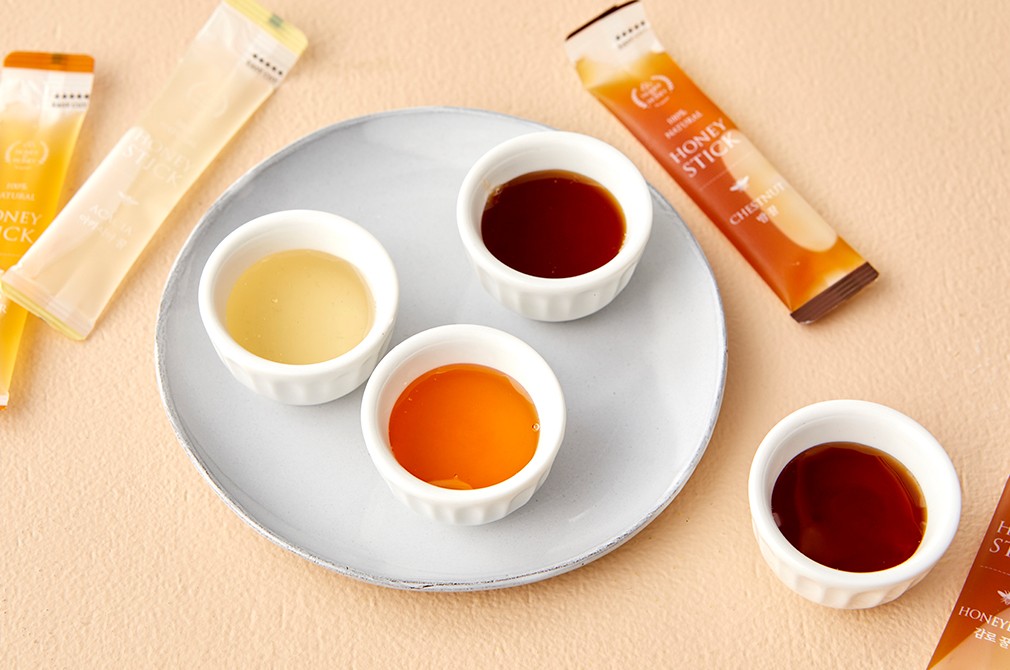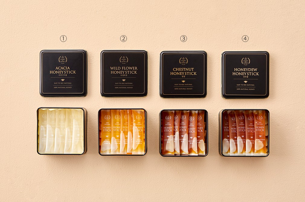 [허니바이허니] 아카시아꿀, 야생화꿀, 밤꿀, 감로꿀 4종 꿀스틱 선물세트 600g