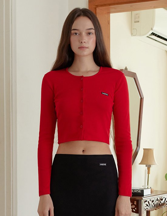 크롭한 기장감의 데일리로 착용하기 좋은 가디건입니다.