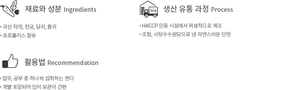 ・특징 : 진한 쌍화 농축액에 프로폴리스 분말을 더해 완성했어요.