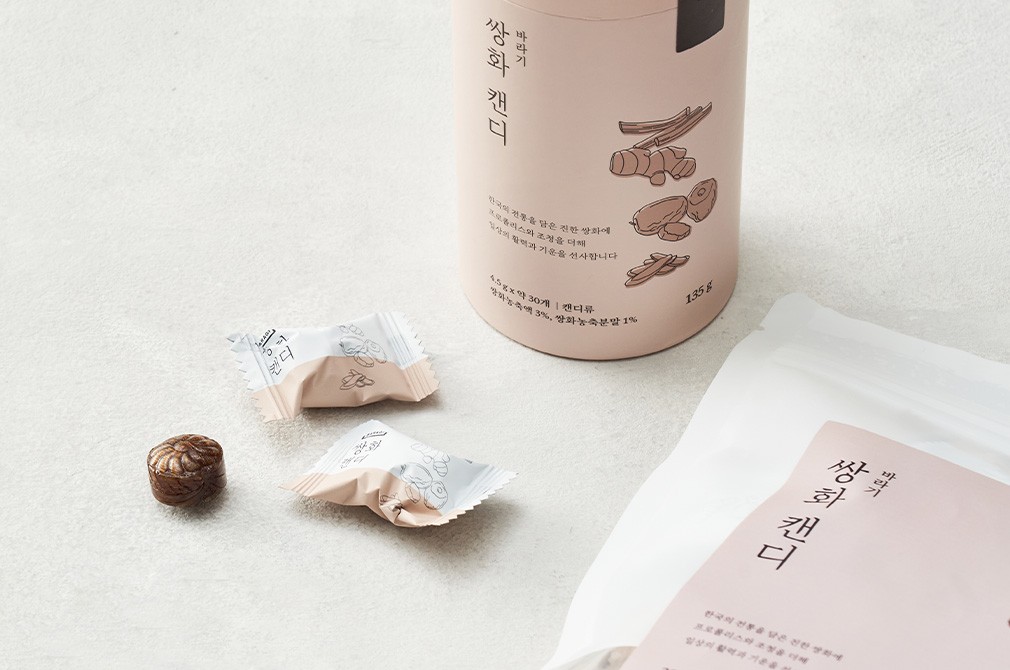 자연 원료를 기반으로 진정한 가치를 전달하고자 하는 브랜드, 바라기의 쌍화캔디를 소개할게요. 국산 작약, 천궁, 당귀 등 재료를 알맞게 배합해 완성한 캔디랍니다. 하나씩 개별 포장되어 있으니 업무, 공부 중에 하나씩 가볍게 드셔보세요.