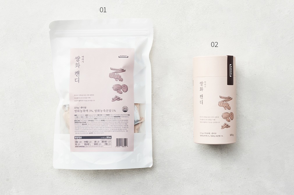 01~02. 쌍화캔디 ・선택가이드 : ①1팩(225g), ②1통(135g) 중 선택하세요.