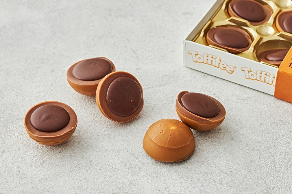 진한 다크초콜릿 속에 쫀득한 초콜릿 캐러멜을 담은 스톡의 토피. 여기에 통 헤이즐넛까지 더해 완성한 토피피를 만나보세요. 한 입에 카라멜, 헤이즐넛, 누가, 초콜릿의 가지각색 달콤함을 모두 만끽할 수 있답니다.