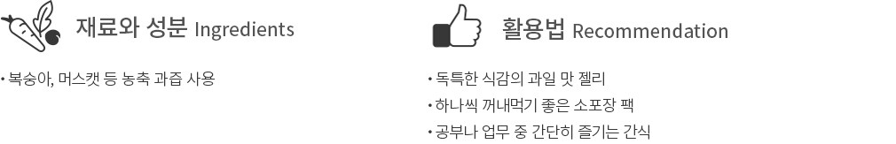 - 퓨아랄 구미 피치: 돼지고기, 복숭아 함유 / 우유, 밀 혼입가능성 있음 - 퓨아랄 구미 머스캣: 돼지고기 함유 / 우유, 밀, 복숭아 혼입가능성 있음