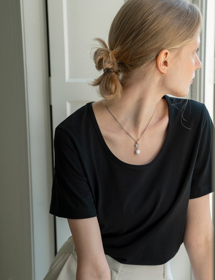[5/2 예약발송] 부담스럽지 않은 파임의 U넥 티셔츠로 이너 웨어로 활용하거나 여름철 단품으로 활용하기 좋은 티셔츠