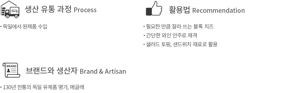 활용팁 ・따뜻한 온도에서 녹여 치즈 퐁듀로 활용해보세요.