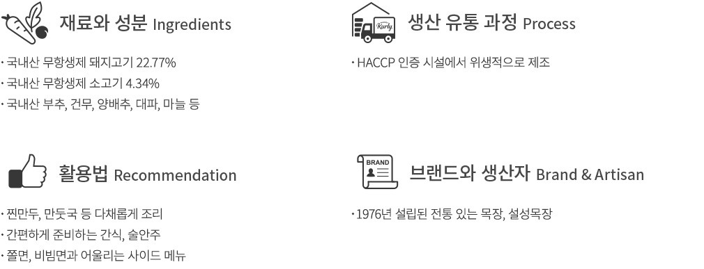 알류(계란), 우유,대두,밀,돼지고기,닭고기,쇠고기,조개류(바지락,모시조개)함유/ 본 제품은 메밀,땅콩,고등어,게,새우,복숭아,토마토,아황산류,호두,오징어,조개류(굴,전복,홍합 포함), 잣을 사용한 제품과 같은 제조시설에서 제조하고있습니다.