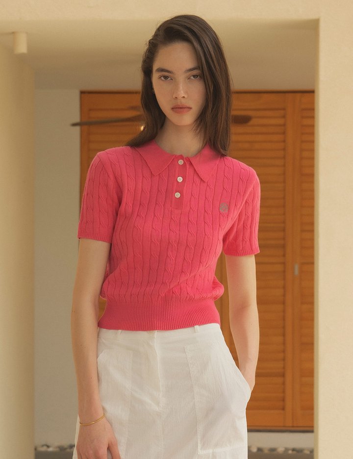 [시야쥬] 코튼 크롭 케이블 카라 니트_핑크(SIKN2079)
