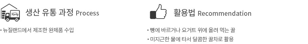 주의사항 : 만 1세 미만의 영유아에게 먹이지 마십시오. 직사광선을 피하여 실온에 보관하시고, 냉장고에 보관하지 마십시오. 천연벌꿀의 특성상 미량의 꽃가루가 포함될 수 있으니 알레르기에 주의하십시오.