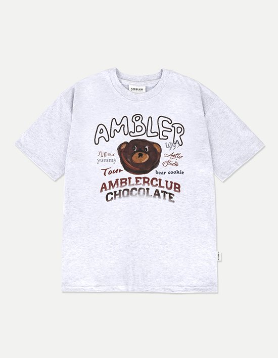 다양한 레터링과 스며든 듯한 느낌의 전사 기법에 체인 자수로 입체감있게 표현한 반팔 티셔츠