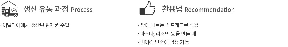 활용팁 ・올리브 페스토를 바게트에 발라 즐겨보세요. 담백한 빵과 짭조름하고 고소한 페스토의 풍미가 조화롭게 어우러질 거예요.
